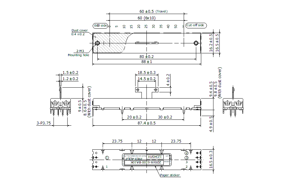 | Sliding life | 100,000 Cycles Min. (18cycles/min, Sliding noise level: Less than 100mV) | |